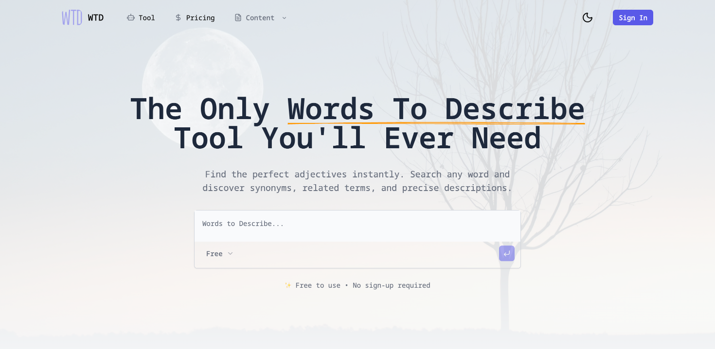Words to Describe (WTD) is a free utility designed to help writers, students, and professionals find the exact words they need.